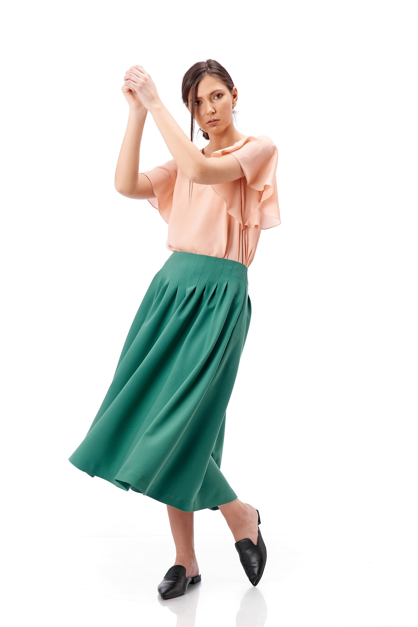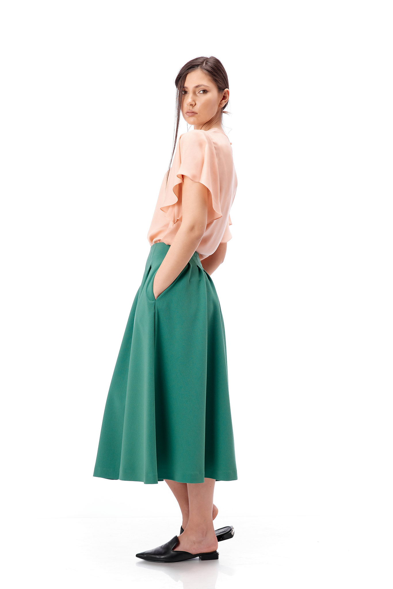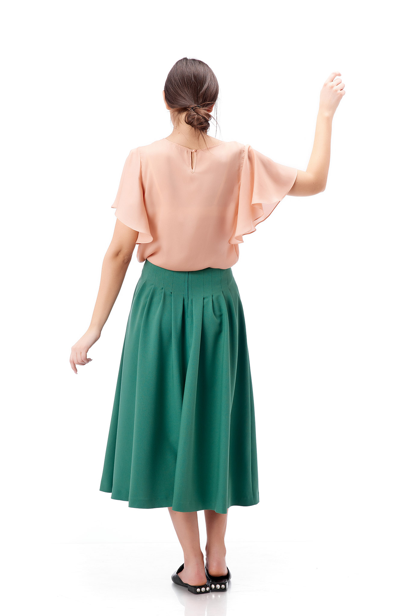 Bluza eleganta de dama ,roz pal, cu croiala lejera si maneca 3/4 evazata. Bluza se inchide cu un nasturel la spate.
