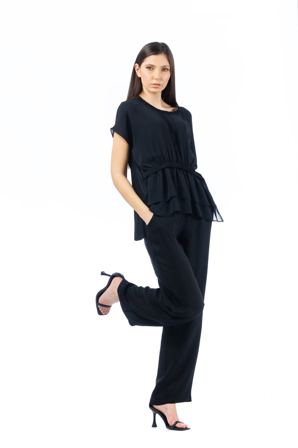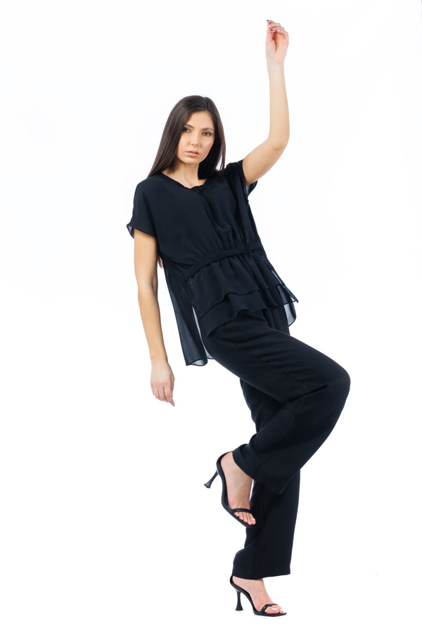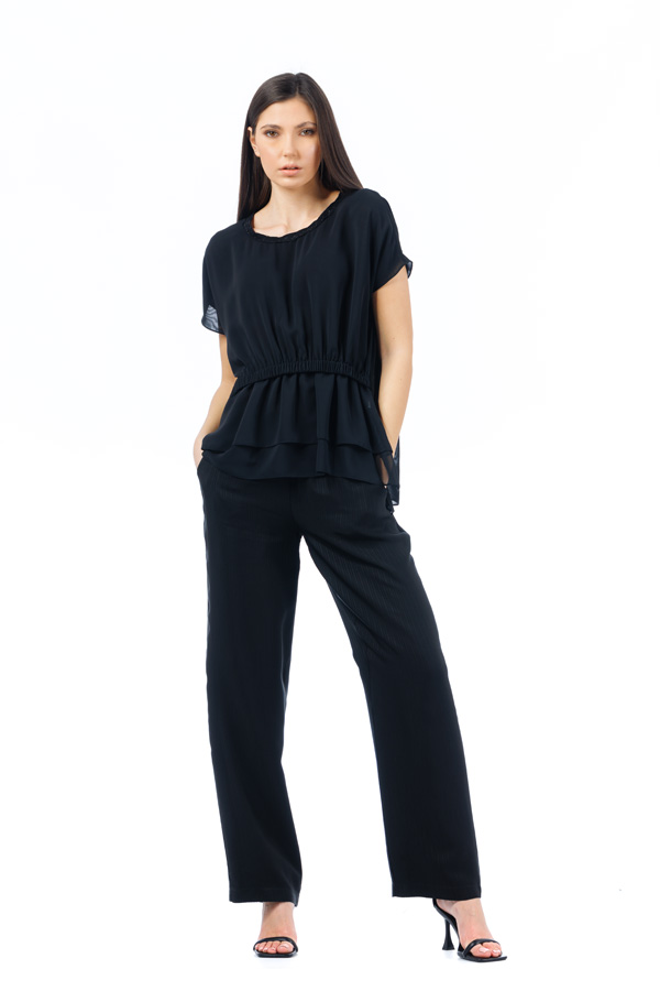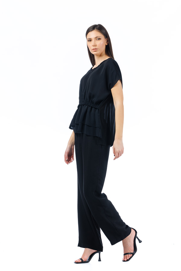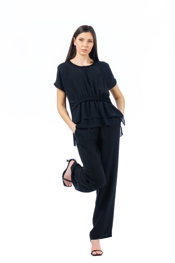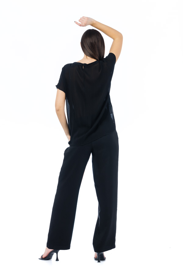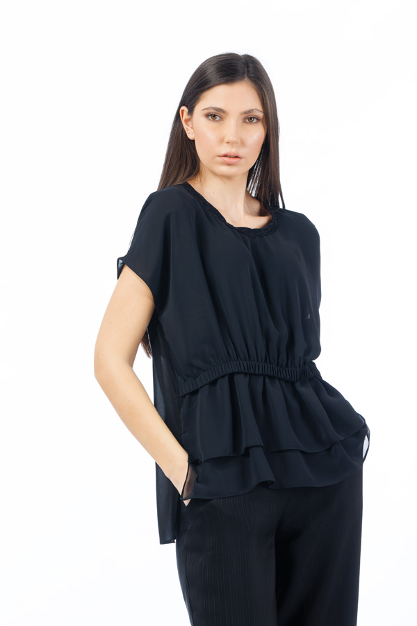 Bluza dama RVL, asimetrica, lejera, ajustata cu banda elastica in fata si dantela aplicata in jurul gatului.