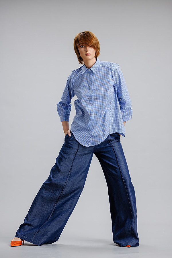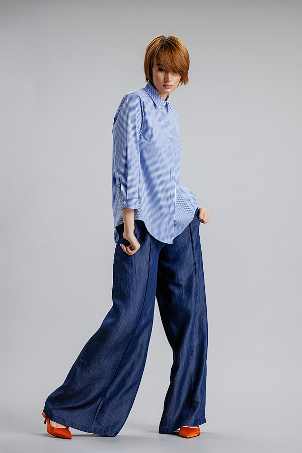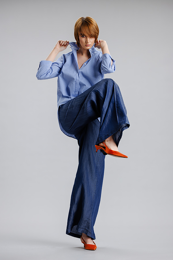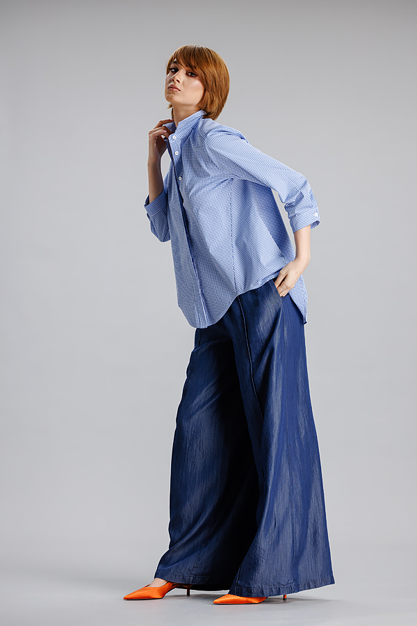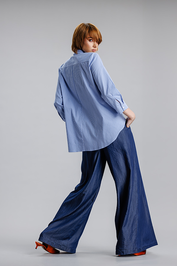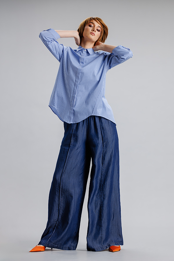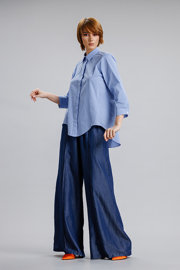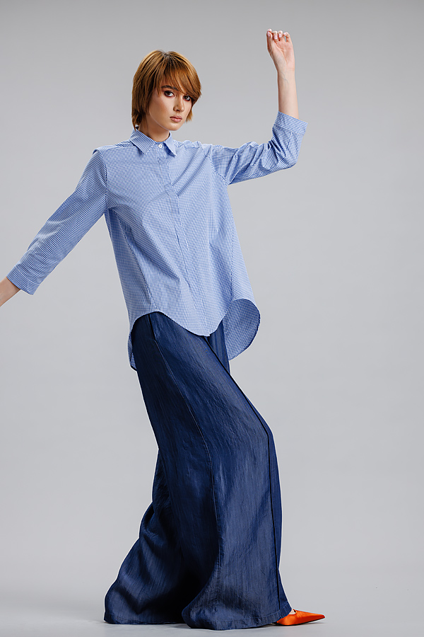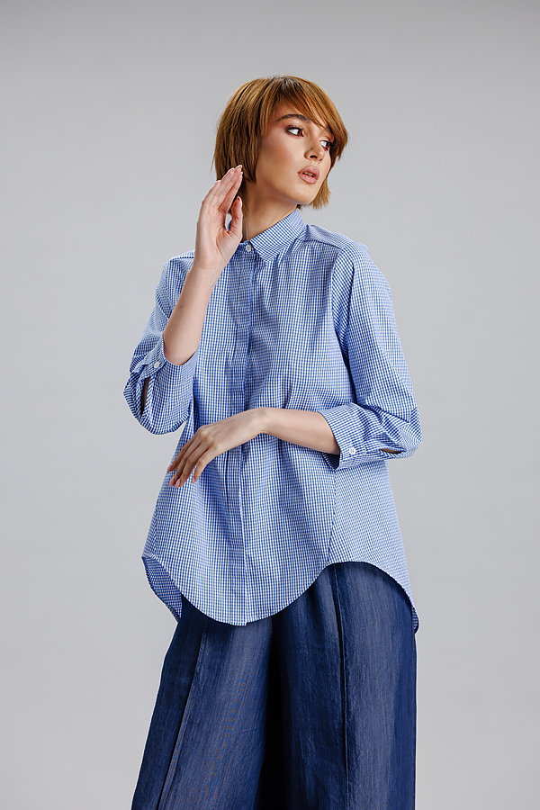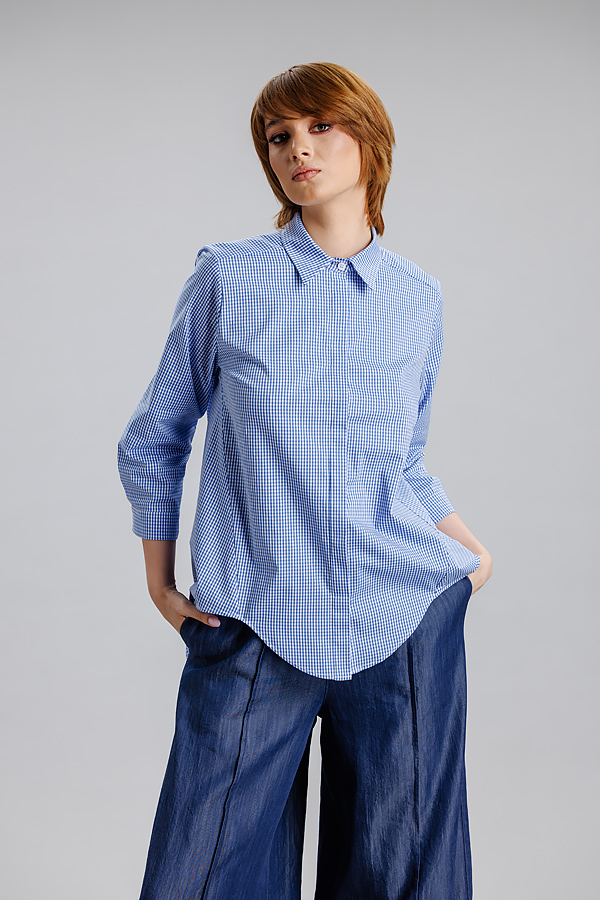 Camasa albastru/dungi RVL, lejera, casual, asimetrica, cu maneca 3/4 si banda decorativa. Practica, confortabila, camasa se poate integra cu usurinta in orice tinuta de zi cu zi, precum si in tinute office.