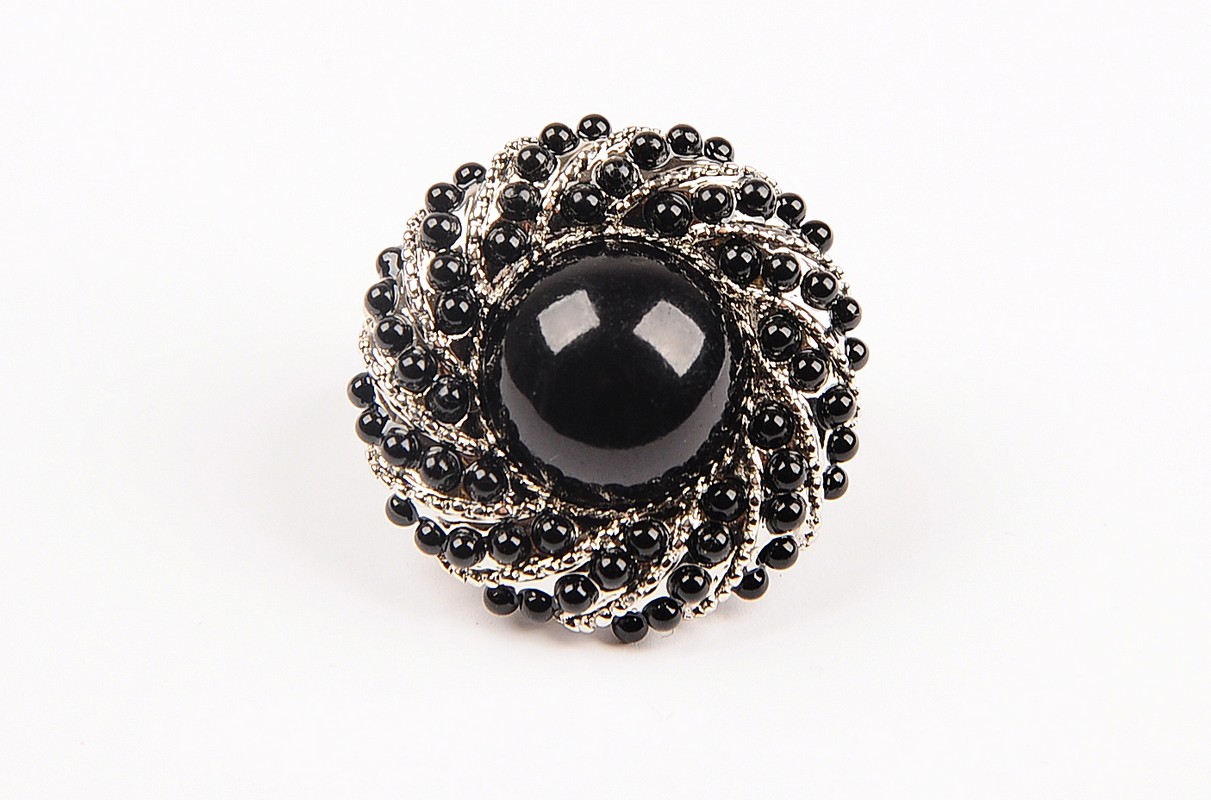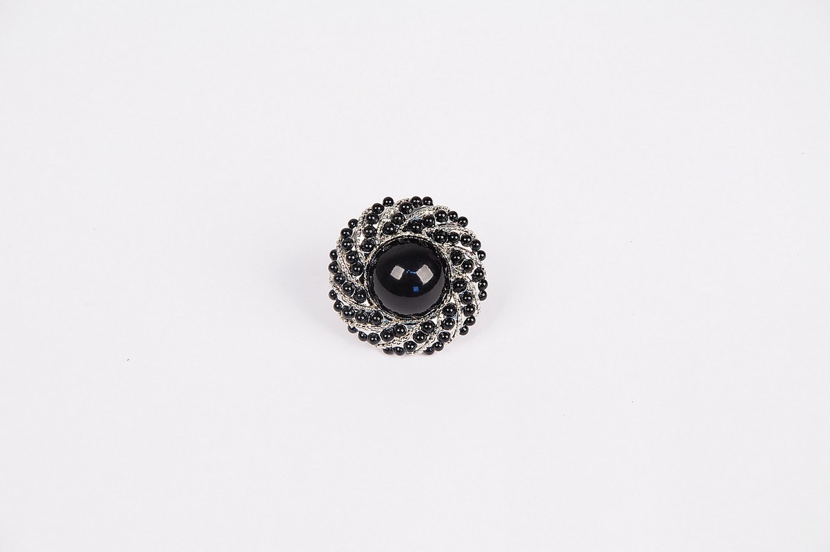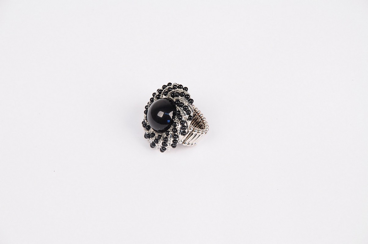 Inel reglabil (elastic) cu o floare argintie pe care este prinsa in mijloc o piatra neagra mare iar in jurul ei sunt prinse cristale si pietre negre mici. Diametrul minim al inelului este de 2 cm, floarea are 3,5 cm.